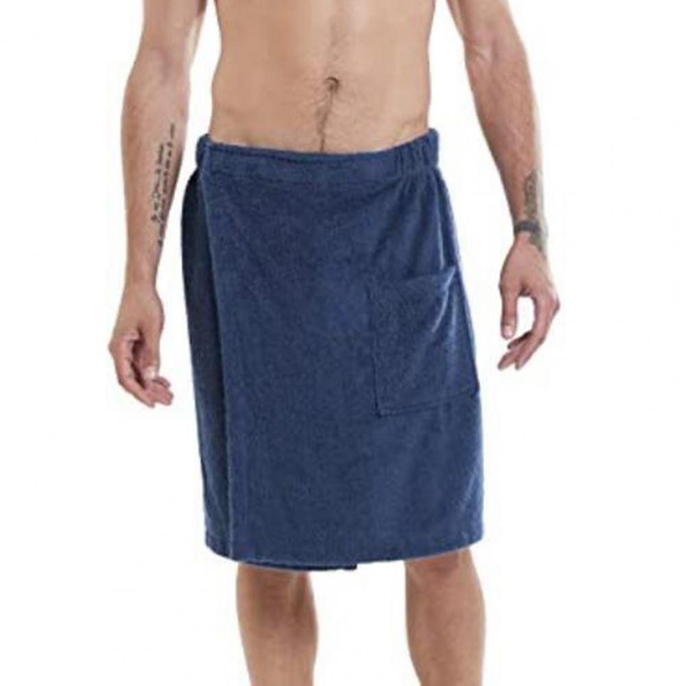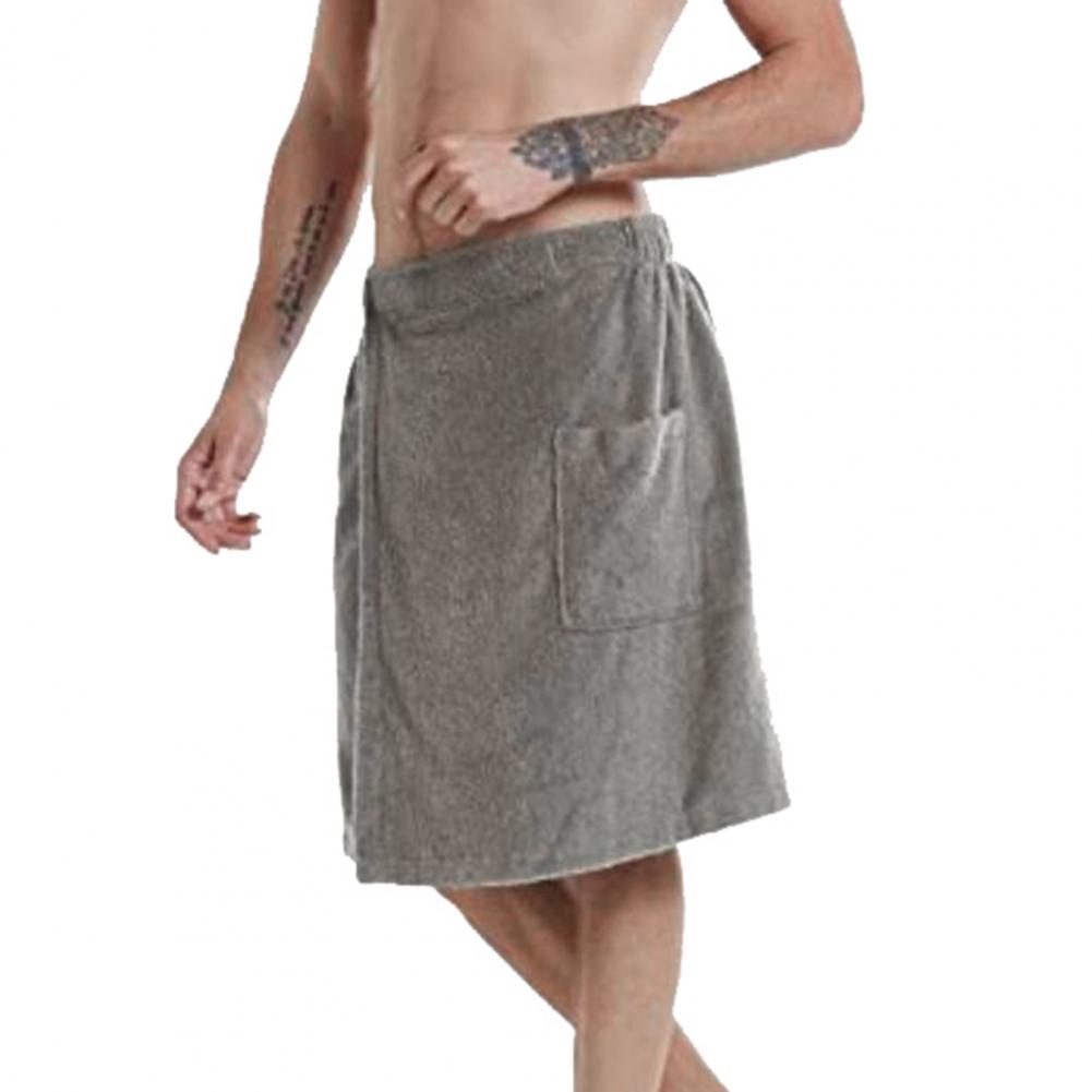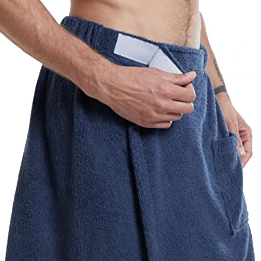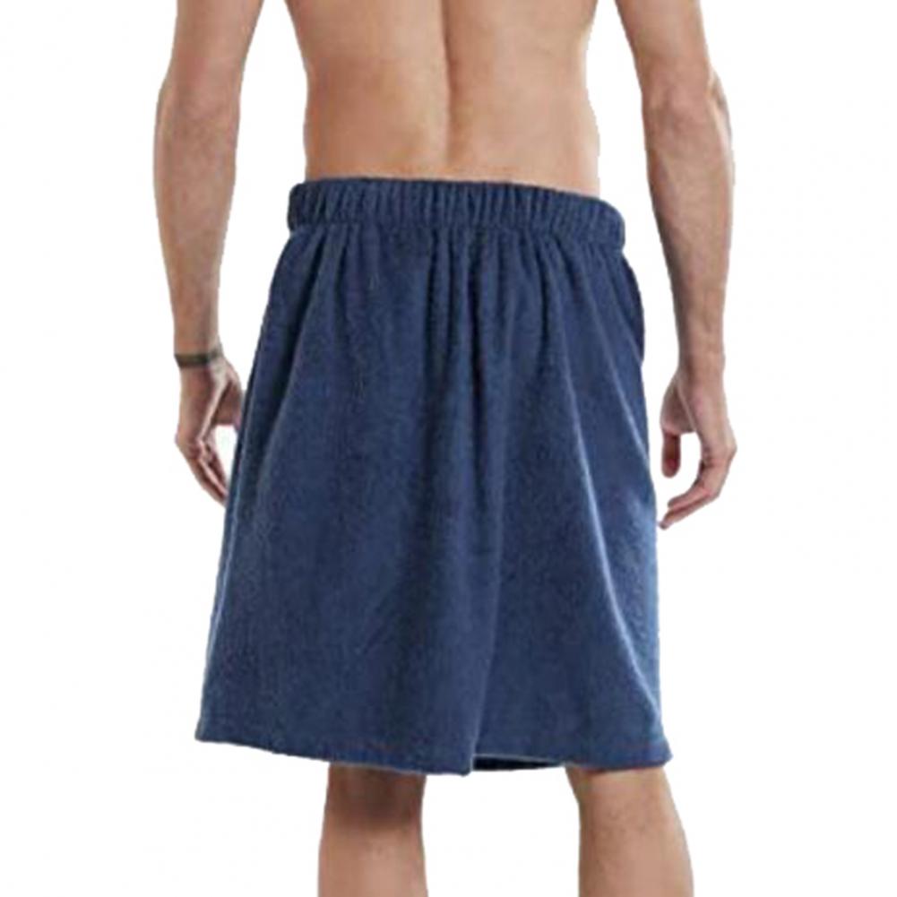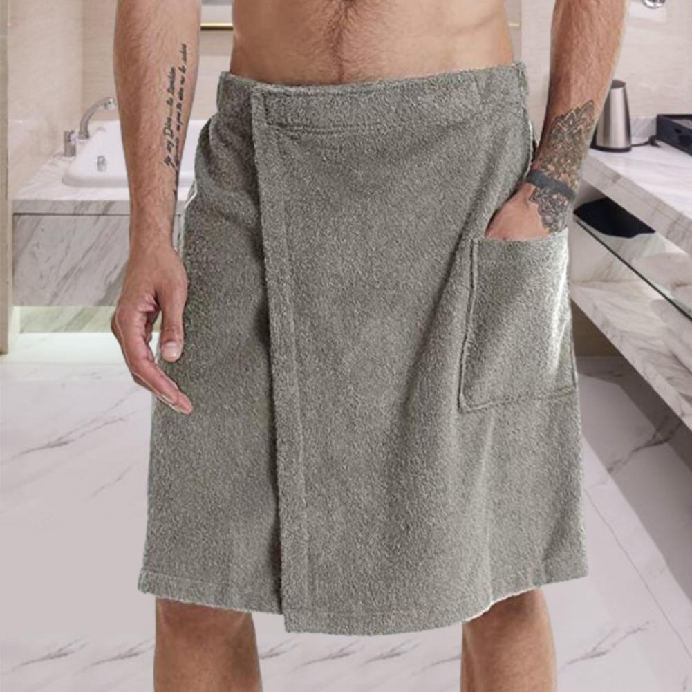 Men Bathrobe Bath Towel Adjustable Elastic Waist Homewear Nightgown Pocket Outdoor Sports Swimming Gym Spa Towel